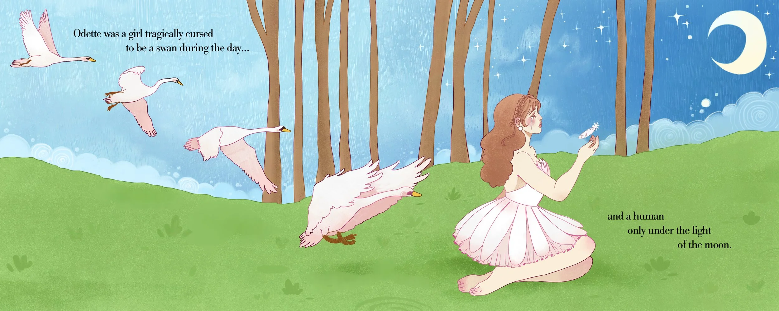 Here’s a sneak peak at my fourth year narrative thesis! Swan Lake is a 15-page whimsical picture book based on Tchaikovsky’s ballet under the same name, full story will be on this page soon!